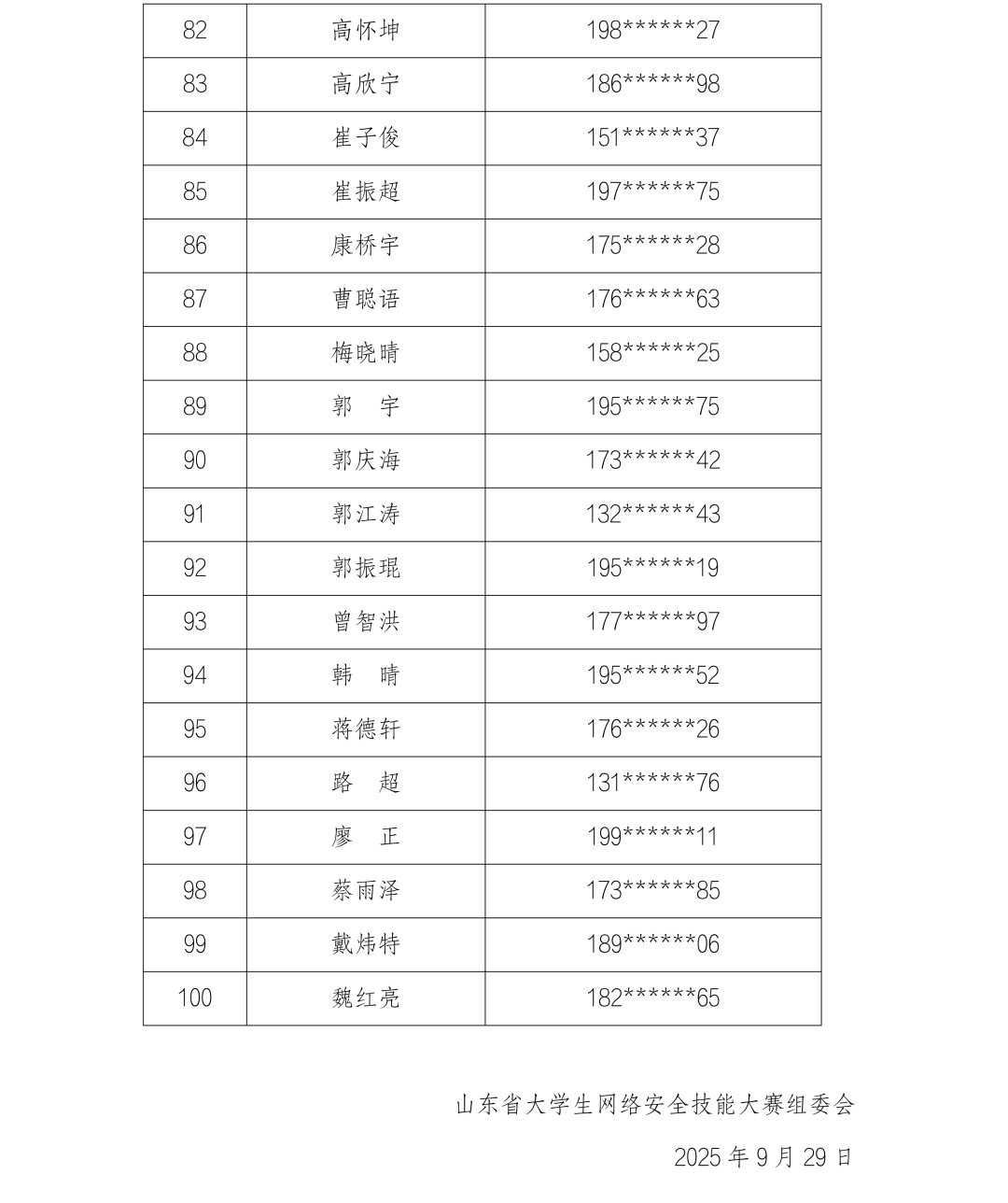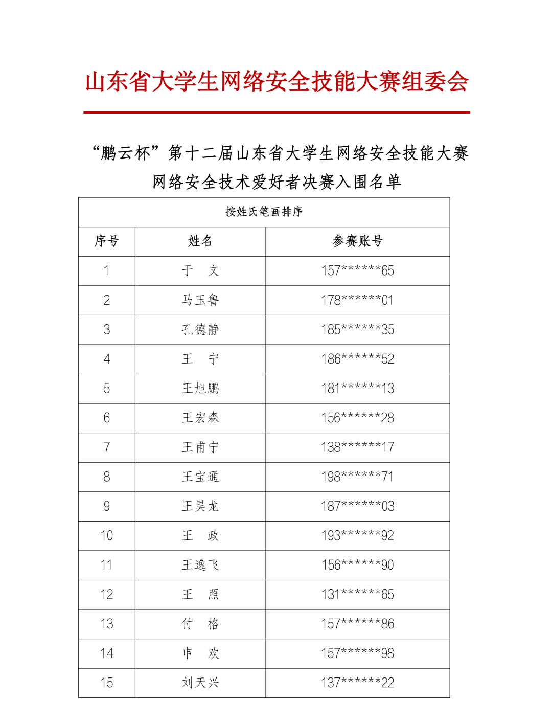 “鹏云杯”第十二届山东省大学生网络安全技能大赛网络安全技术爱好者决赛入围名单